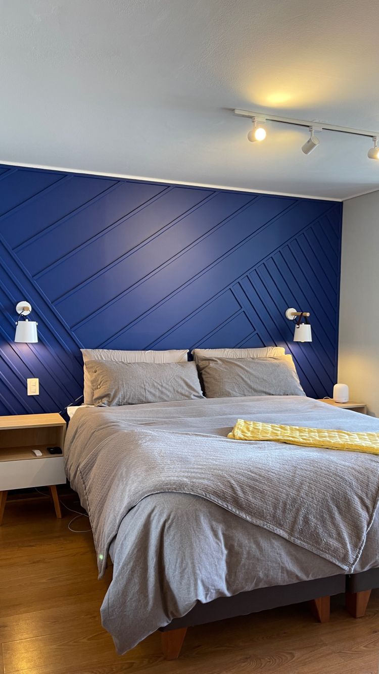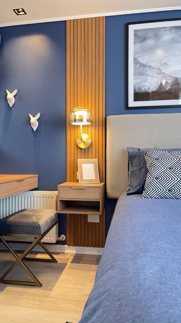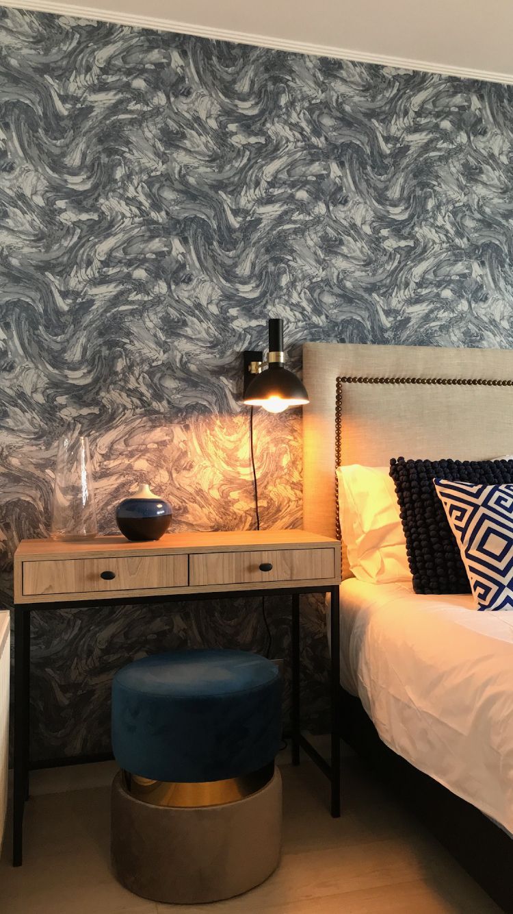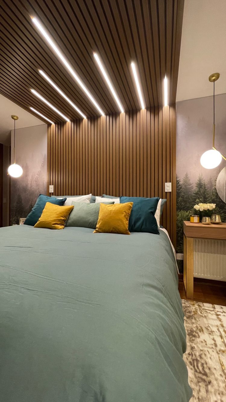 Proyecto de interiorismo con mejora de iluminación y trabajos en obra de mural 3d cabecero.