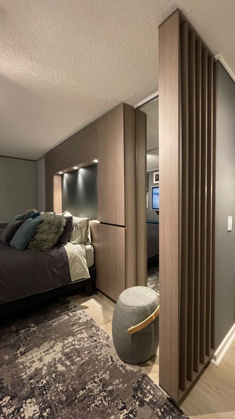Remodleación total con intervención en muro con mobiliario a medida al igual que foto murales junto con la reestructuración de walking closet.